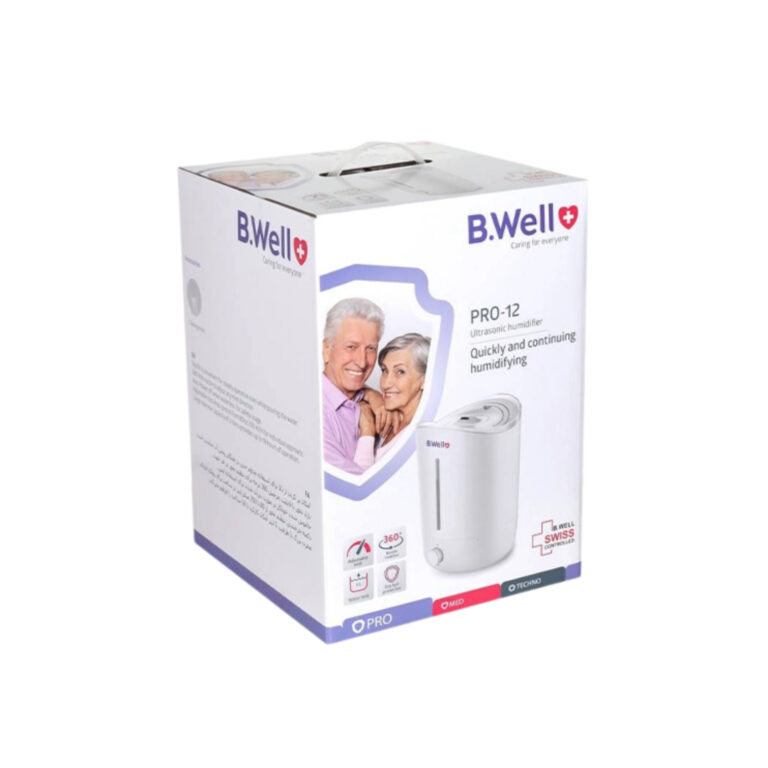 دستگاه بخور سرد PRO-12 مشکی بی ول Cold Mist Humidifier Pro-12 B.Well Black، مؤثر در افزایش سلامت خانواده می باشد. دستگاه بخور، وسیلهای است که آب یا مایعات دیگر را به بخار تبدیل و به مرطوب شدن هوای خشک کمک می کند. استفاده از دستگاه بخور در بهبود بیماری هایی همچون سرماخوردگی و آنفولانزا مؤثر است. بخور سبب مرطوب ماندن مجاری تنفسی شما می شود و در کاهش علائم سرفه و عطسه نقش مفیدی را ایفا می کند. استفاده از دستگاه بخور فواید قابل توجهی دارد. دستگاه بخور سرد PRO-12 مشکی بی ول دارای نازل بخور با قابلیت چرخش 360 درجه جهت تنظیم بخور در هر جهت را دارا می باشد. این دستگاه با ظرفیت 5 لیتری امکان کارکرد تا 18 ساعت را فراهم می کند.
